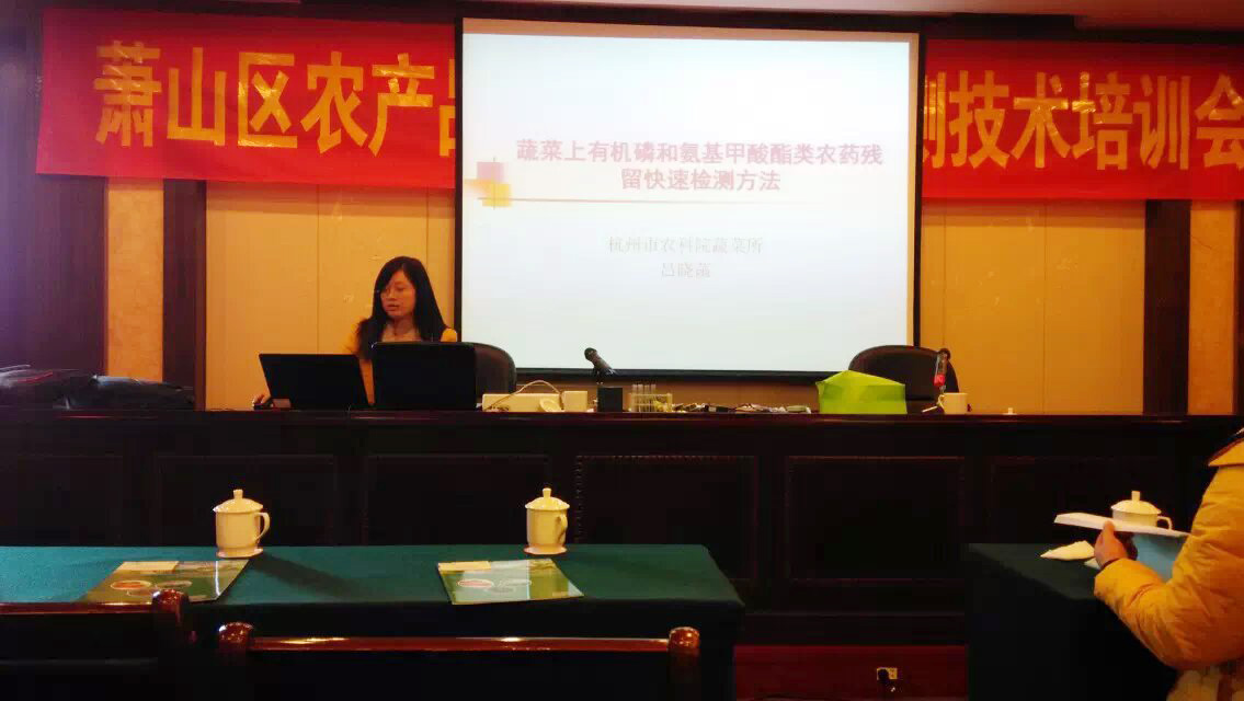 杭州市農(nóng)業(yè)科學(xué)院蔬菜研究所呂曉菡老師講課,以蔬果有機磷和氨基甲酸酯類農(nóng)藥定性檢測為題,就農(nóng)殘檢測儀原理,農(nóng)殘檢測儀操作規(guī)程,以及操作注意事項進行重點講解,要求所有檢測人員能夠知其然而知其所以然,力求檢測結(jié)果科學(xué)化,精確化,為判斷農(nóng)產(chǎn)品安全與否,提供有效依據(jù)。
