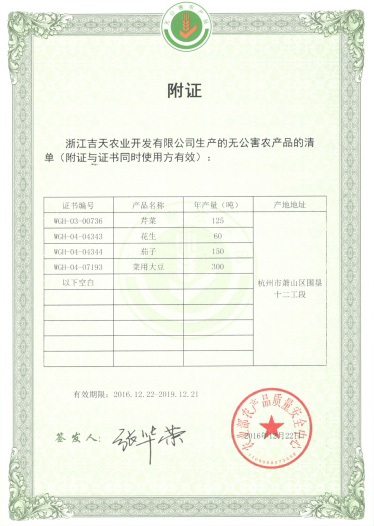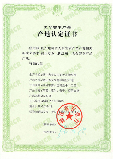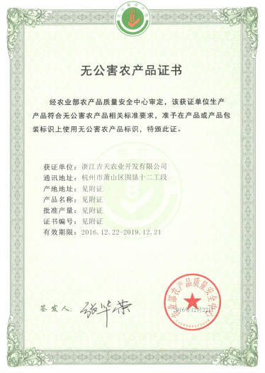 無公害農(nóng)產(chǎn)品產(chǎn)地認(rèn)證證書